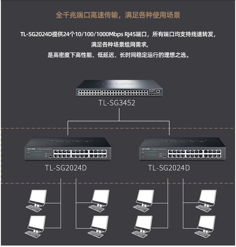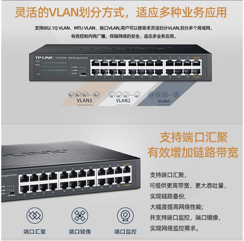 tplink24口千兆交換機(jī)16口48口百兆監(jiān)控專用網(wǎng)絡(luò)無線網(wǎng)線分流轉(zhuǎn)換交換器以太網(wǎng)企業(yè)web網(wǎng)管級(jí)VLAN匯聚SG2024D