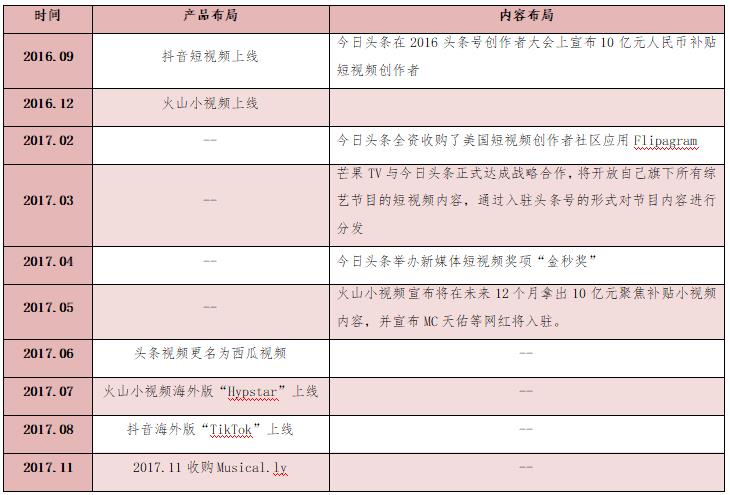 2016年9月20日,今日頭條正式宣布入局短視頻,創(chuàng)始人張一鳴也公開表示短視頻將是內(nèi)容創(chuàng)業(yè)的下一個風(fēng)口,隨后今日頭條開始全面布局短視頻。