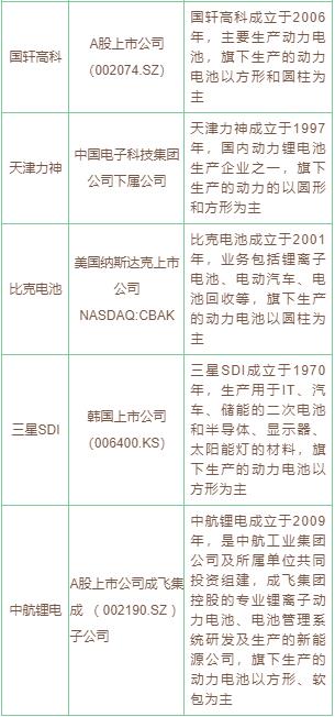 電池上游重點企業(yè)