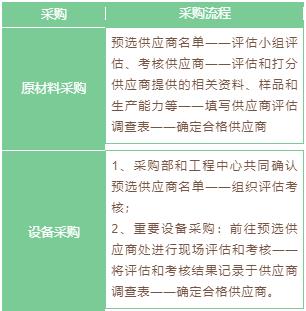 公司采購包括原材料采購和設備采購,采購流程主要有合格供應商選擇、框架合約簽署、供應商產品驗證和采購價格談判四個環(huán)節(jié)。
