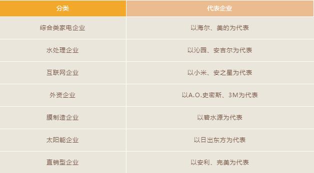 目前涉足凈水市場(chǎng)的企業(yè)大致可以分為以下八類: