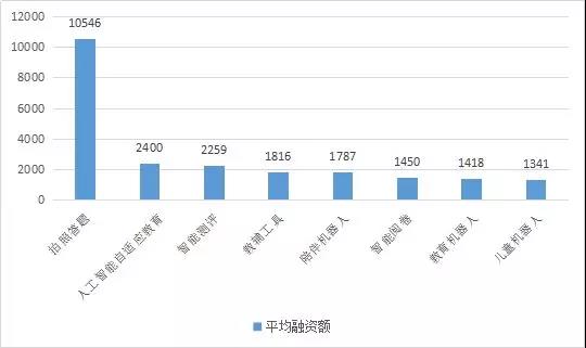 人工智能自適應(yīng)教育項(xiàng)目的融資事件數(shù)量很少排在倒數(shù)第二的位置,但平均融資額卻達(dá)到了第二。可見雖然行業(yè)處于早期階段,但相對于其他細(xì)分領(lǐng)域來說更受資本的青睞。
