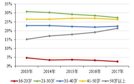 農(nóng)民工是我國城鎮(zhèn)化進程中的勞動力主力軍,然而近年來,農(nóng)民工群體也呈現(xiàn)出逐步老齡化的特征,農(nóng)民工平均年齡不斷提高,50歲以上農(nóng)民工所占比重提高較快。2017年農(nóng)民工平均年齡為39.7歲,比16年提高0.7歲。從年齡結構看,30歲以下的年青一代農(nóng)民工所占比重為29.9%,比16年下降2.0個百分點;40歲及以下農(nóng)民工所占比重為52.4%,比16年下降1.5個百分點;50歲以上農(nóng)民工所占比重為21.3%,比16年提高2.2個百分點,自2014年以來比重提高呈加快態(tài)勢。農(nóng)民工老齡化逐年加劇,直接影響了社會勞動力的供給,機器替代人工成為解決這一問題最為有效的方式,也是我國制造業(yè)轉(zhuǎn)型升級的必經(jīng)之路。