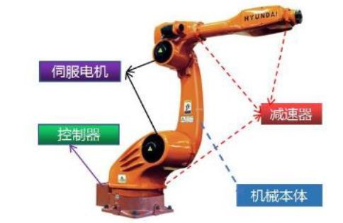 工業(yè)機器人核心零部件包括減速器、控制器和伺服系統(tǒng)等。減速器是機械傳動的核心,機器人的速度、精度都與減速器有關,工業(yè)機器人使用的減速器主要是諧波減速器和RV減速器。