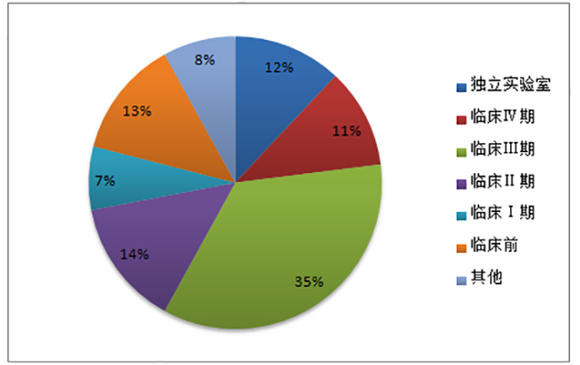 據(jù)美國(guó)臨床試驗(yàn)數(shù)據(jù)庫(kù)等數(shù)據(jù)來(lái)源顯示,2014年全球 CRO 市場(chǎng)收入約 70%來(lái)自臨床市場(chǎng)。其中,臨床Ⅱ和臨床Ⅲ期占了全部收入的 50%左右。我國(guó)CRO市場(chǎng)臨床研究占到近60%。其中,臨床I至III期市場(chǎng)合計(jì)約 37%,占比相對(duì)較低,且服務(wù)水平尚有一定提升空間。近年來(lái),隨著國(guó)內(nèi)大中型 CRO 企業(yè)在臨床試驗(yàn)領(lǐng)域與跨國(guó)藥企開(kāi)展合作,積累了越來(lái)越多的優(yōu)質(zhì)客戶和臨床試驗(yàn)研究經(jīng)驗(yàn),服務(wù)水平也正在快速提高,并逐步向國(guó)際先進(jìn)水平靠攏。