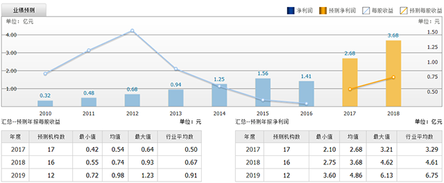 截至2017年7月17日,6個(gè)月以內(nèi)共有 17 家機(jī)構(gòu)對(duì)泰格醫(yī)藥的2017年度業(yè)績(jī)作出預(yù)測(cè);預(yù)測(cè)2017年每股收益 0.54 元,較去年同比增長(zhǎng) 80%,預(yù)測(cè)2017年凈利潤(rùn) 2.68 億元,較去年同比增長(zhǎng) 90.4% 。