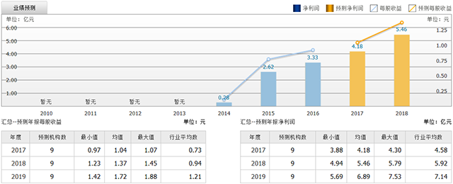 截至2017年7月17日,6個(gè)月以內(nèi)共有 9 家機(jī)構(gòu)對(duì)華大基因的2017年度業(yè)績(jī)作出預(yù)測(cè);預(yù)測(cè)2017年每股收益 1.04 元,較去年同比增長(zhǎng) 13.04%,預(yù)測(cè)2017年凈利潤(rùn) 4.18 億元,較去年同比增長(zhǎng) 25.53%。