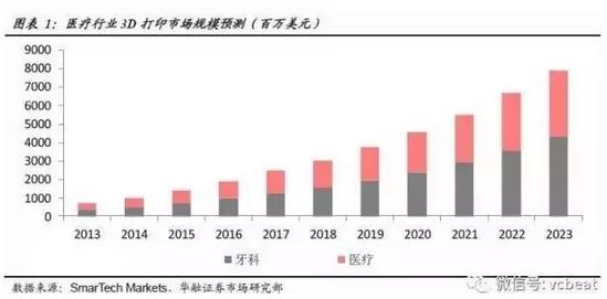 根據(jù)SmarTech《牙科3D打印2015:一個(gè)十年的機(jī)會(huì)預(yù)測(cè)與分析》中的預(yù)測(cè),3D打印技術(shù)在牙科領(lǐng)域的市場(chǎng)規(guī)模到2016年會(huì)達(dá)到20億美元,2020年銷售規(guī)模可上升至31億美元。
