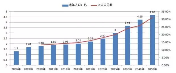 2004年底,中國60歲及以上老年人口為1.43億,2013年我國60歲及以上老年人口達2億人。截止2016年底,我國60歲以上的老齡人口高達2.3億人,位居世界之首。20世紀后期,為控制人口的急劇增長,國家推行計劃生育政策,使得人口出生率迅速下降,加快了中國人口老齡化的進程。由于下世紀前半葉人口壓力仍然沉重,還要繼續(xù)堅持計劃生育的國策,其結果將不可避免地使中國提早達到人口老齡化高峰。在第六次全國人口普查主要數(shù)據(jù)顯示,我國60歲及以上人口占13.26%,比2000年人口普查上升2.93個百分點,其中65歲及以上人口占8.87%,比2000年人口普查上升1.91個百分點,而且老年人口比例還以每年超過3%的速度增長,預計2025年將達到19.7%,到那時,每五個中國人就有一個是60歲以上的人。按國家統(tǒng)計局2005年出版的報告,現(xiàn)在出生的中國人,男性平均壽命是69.6歲,女性的預期壽命是73.5歲。