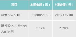 2016年,維拓環(huán)境研發(fā)投入金額為3288855.60元,相較2015年有所增長(zhǎng)。維拓環(huán)境研發(fā)投入占營(yíng)業(yè)收入的比例,由2015年的7.70%下降為2016年的6.52%。
