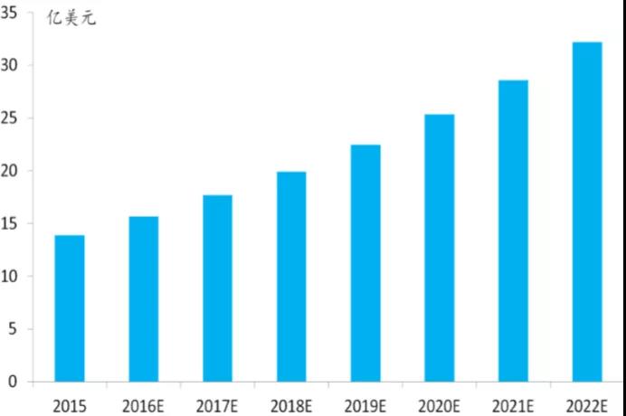 根據PWC機構預測,2016 年,智能車和車聯(lián)網市場預計規(guī)模為403 億歐元(約 3000 億人民幣),2021年,預計市場規(guī)模為1226億(約 9000億人民幣),智能車和車聯(lián)網市場預計以平均每年 25%的速度增長,其中,安全部分占據最大比重,從2016年的155億歐元增長到493億歐元。按照 PWC 的預計,智能汽車和車聯(lián)網全球市場空間未來有望達到萬億人民幣規(guī)模。