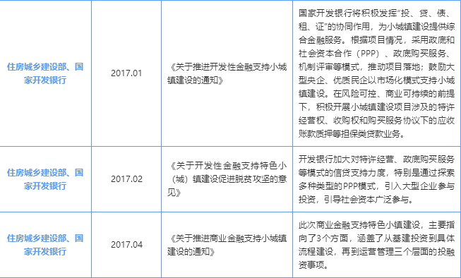2016年以來(lái),國(guó)家發(fā)改委、住建部聯(lián)合多個(gè)銀行出臺(tái)多項(xiàng)支持特色小鎮(zhèn)建設(shè)的政策文件及金融支持文件。
