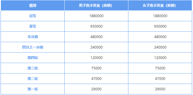 溫網(wǎng)單打獎(jiǎng)金表