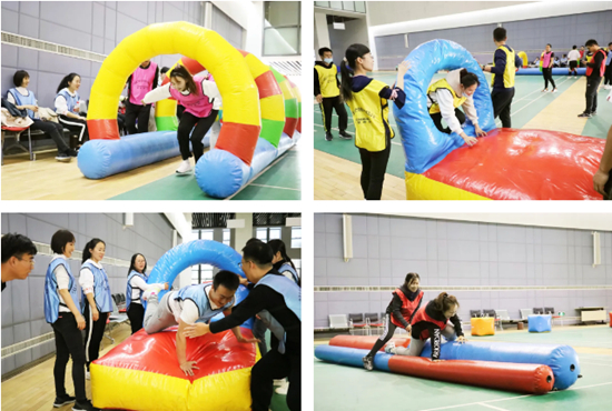 “螃蟹過河”挑戰(zhàn)團隊協(xié)作與配合。每四人組成一只可愛的“螃蟹”,在最短的時間內(nèi)往返通過獨木橋的隊伍即獲得勝利。螃蟹服形態(tài)臃腫,褲腿相連,給隊員們增添了不少比賽難度,參賽隊員們在極短的時間內(nèi)商量戰(zhàn)術(shù),迅速統(tǒng)一思想,賽場上他們口號整齊,步伐一致,為了完成同一個目標(biāo)而齊心協(xié)力、共同努力,在日常工作中積累的信任與默契展露無遺。